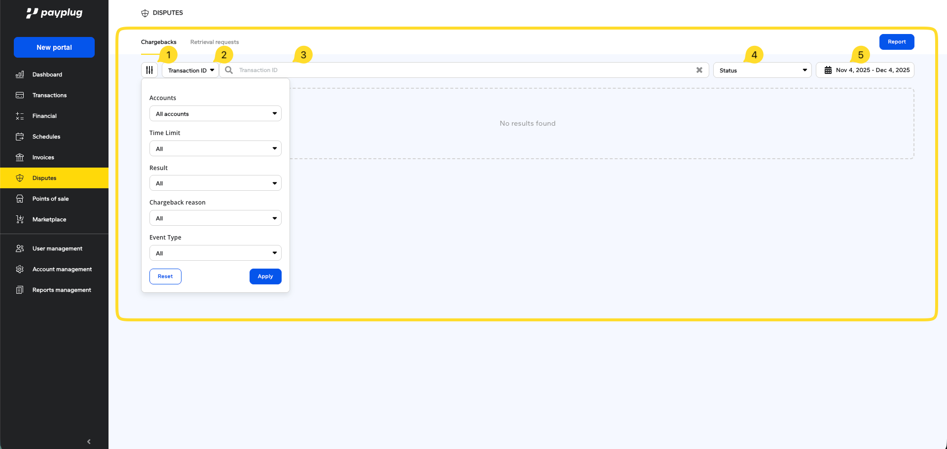 - Retrieval Requests: This tab serves as a history for old document requests. Since Payplug no longer receives these requests, it's primarily used for consultation.