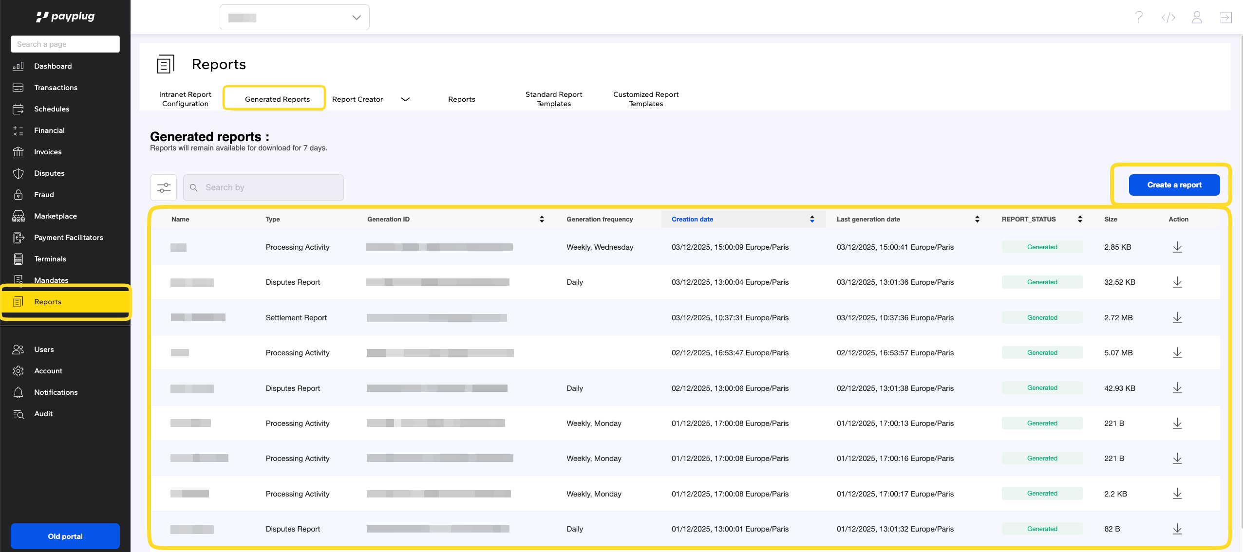Cliquez sur "Generate report". Le rapport sera préparé et apparaîtra dans l’onglet "Generated reports".