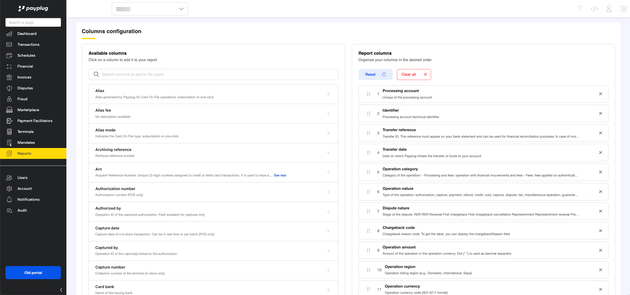 En cas de besoin, les colonnes disponibles pour nos exports sont détaillées dans notre documentation technique : https://developer.dalenys.com/ui/developer-doc/report.html#types-of-reports